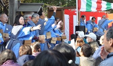 毎年豆まき奉仕者を募集しています(どなたでも参加可能です)。御祓いを受けて頂いた後に豆まきいただきます。
